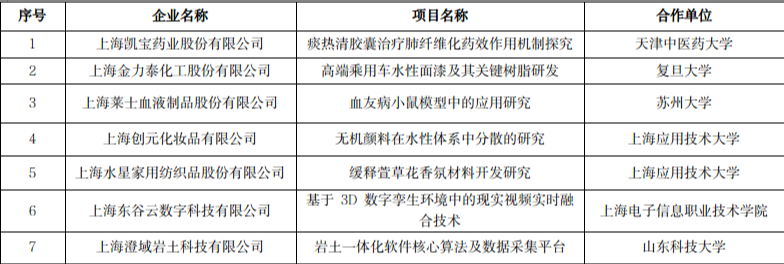公示时间:2023年6月26日-7月2日 联系电话:37188022 特此通知。 上海市奉贤区区科学技术委员会 2023年6月26日 2023年第一批次奉贤区产学研合作项目拟扶持项目名单