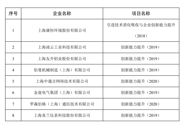 公示|2018-2020年度上海市产业转型升级发展专项 (产业技术创新)配套资金扶持项目的公示
