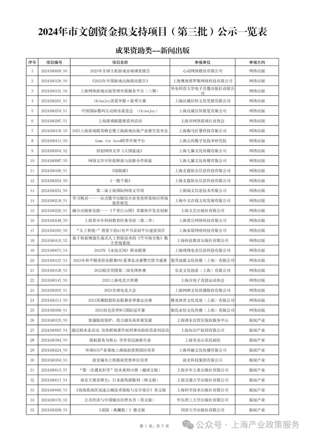 公示|2024年上海市促进文化创意产业发展财政扶持资金拟支持项目(第三批)名单公示