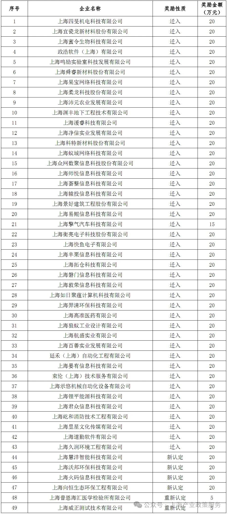 公示|松江区2023年度第二批高新技术企业拟奖励名单的公示(49家)