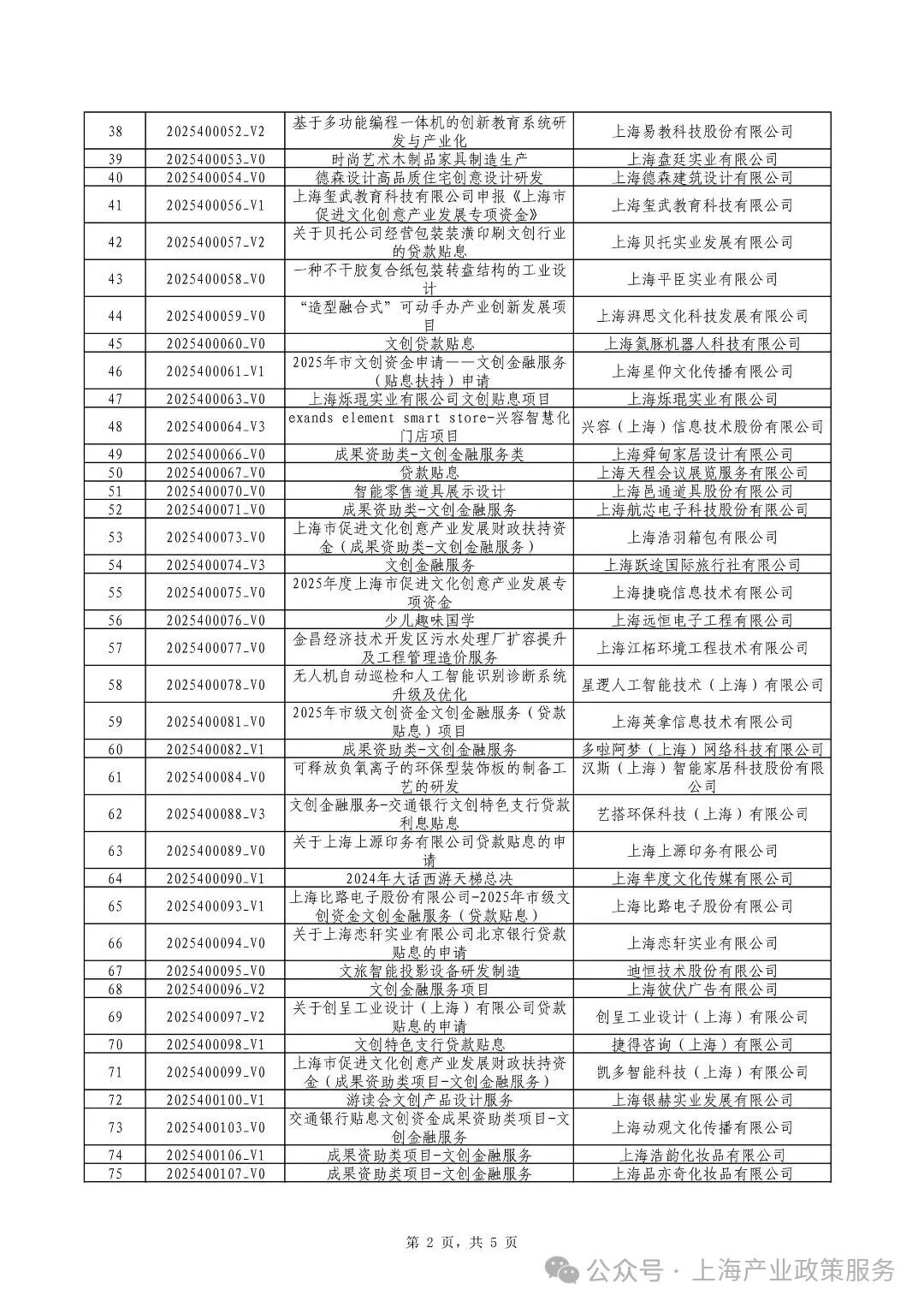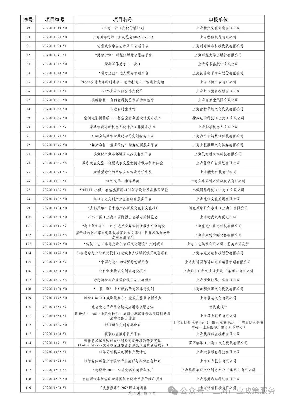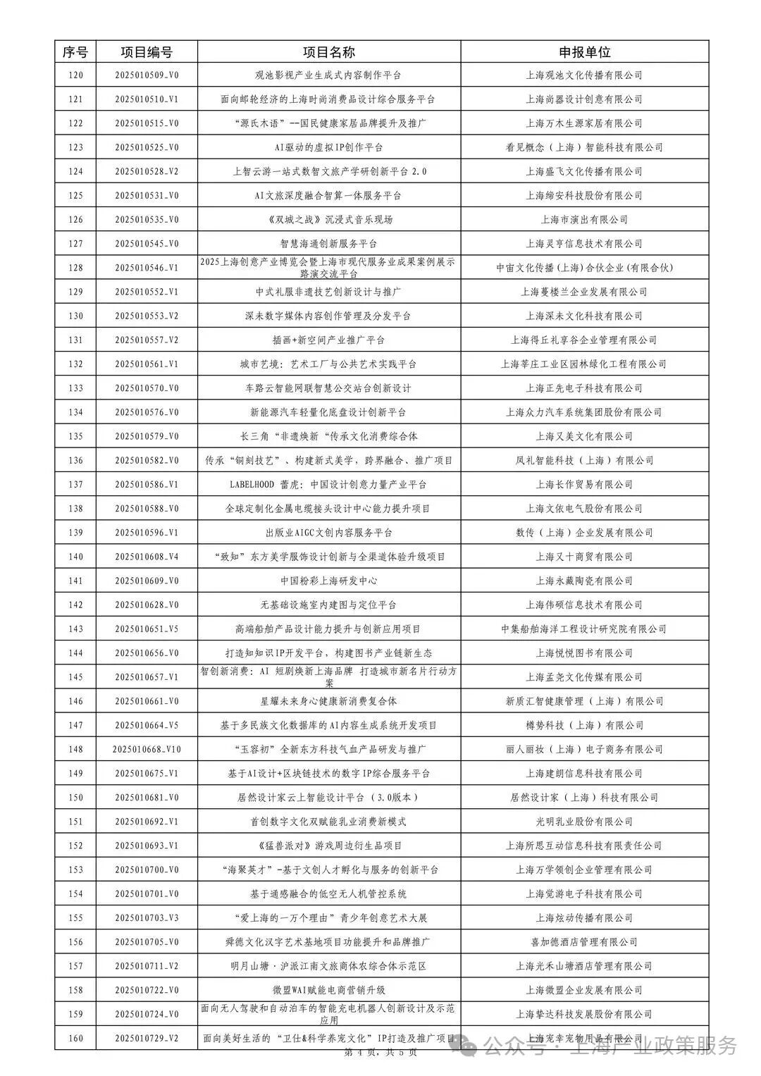 公示|2025年上海市促进文化创意产业发展专项资金拟支持项目(第一批)公示