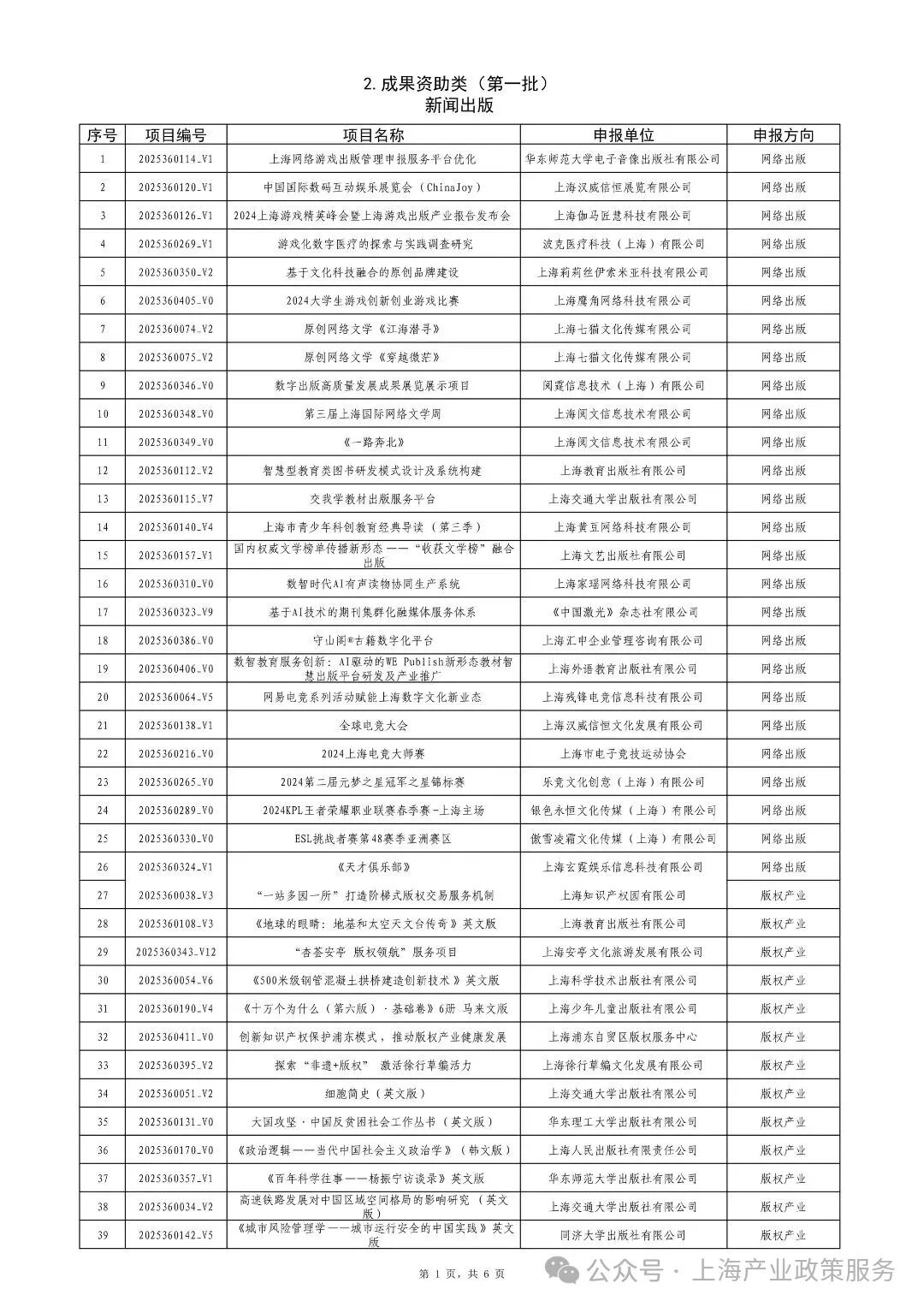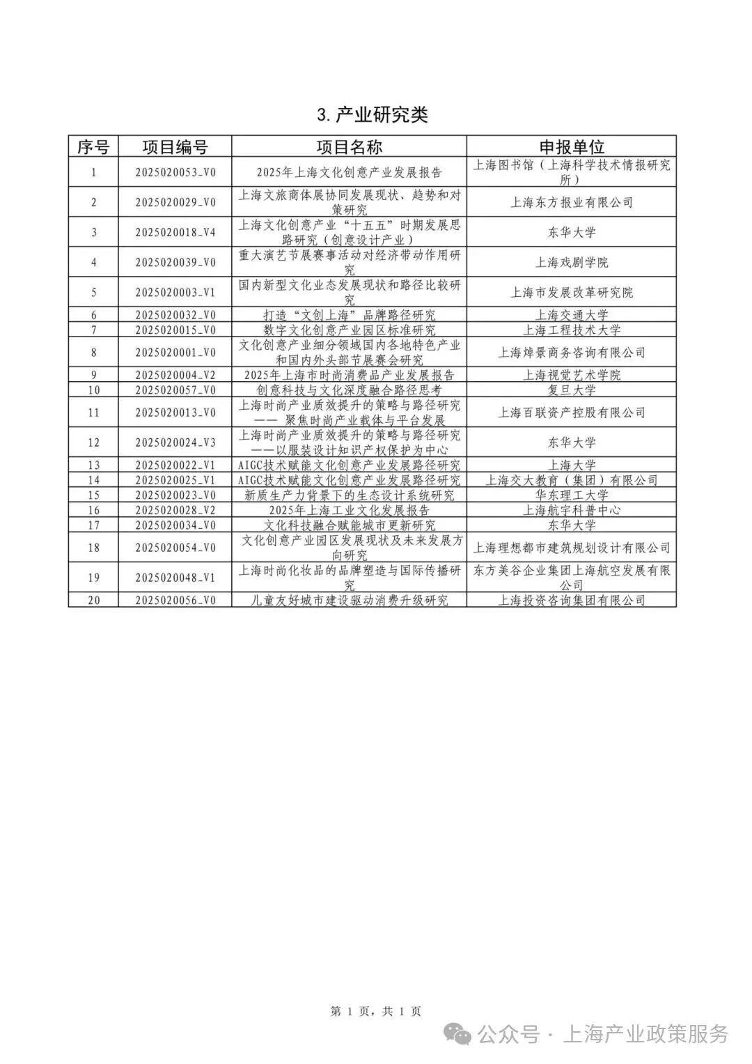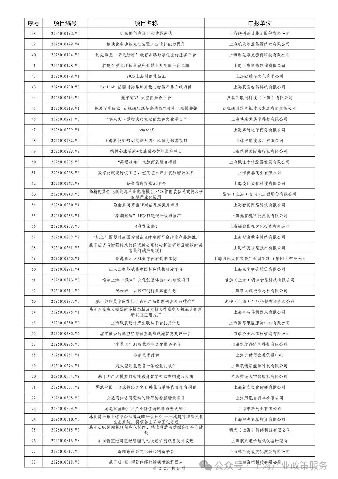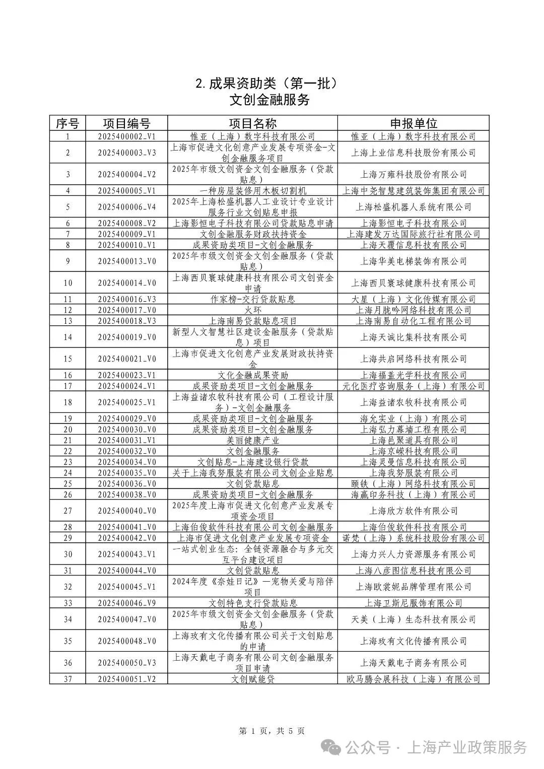 公示|2025年上海市促进文化创意产业发展专项资金拟支持项目(第一批)公示