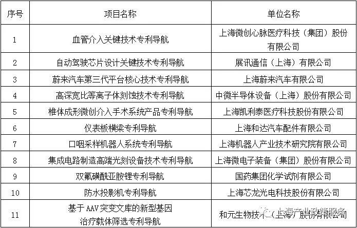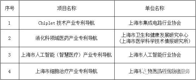 公示|上海市知识产权局关于确定2022年专利导航工程项目的通知