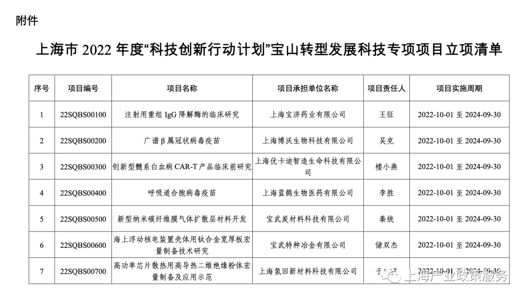 公示|上海市2022年度“科技创新行动计划”宝山转型发展科技专项项目立项的通知