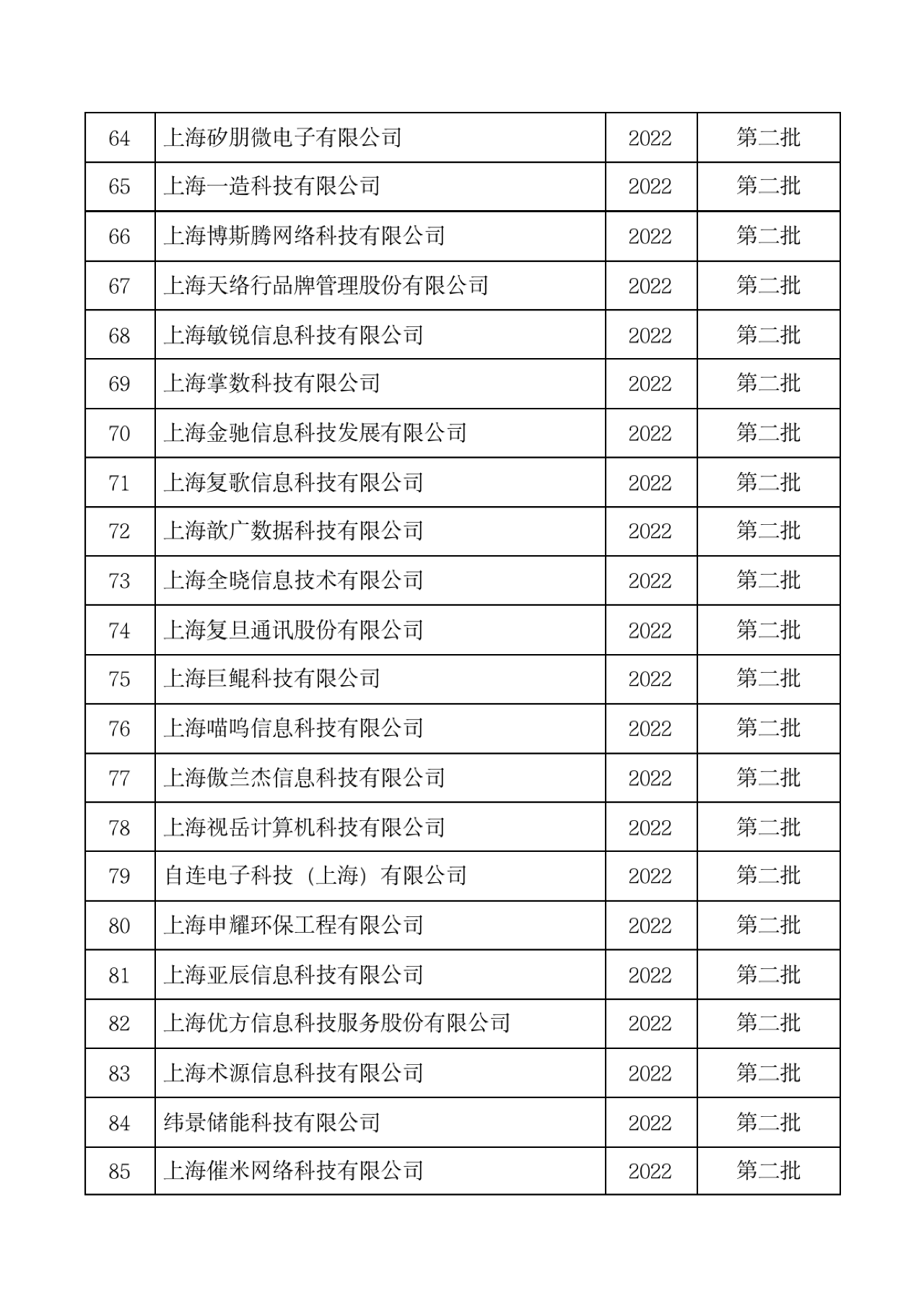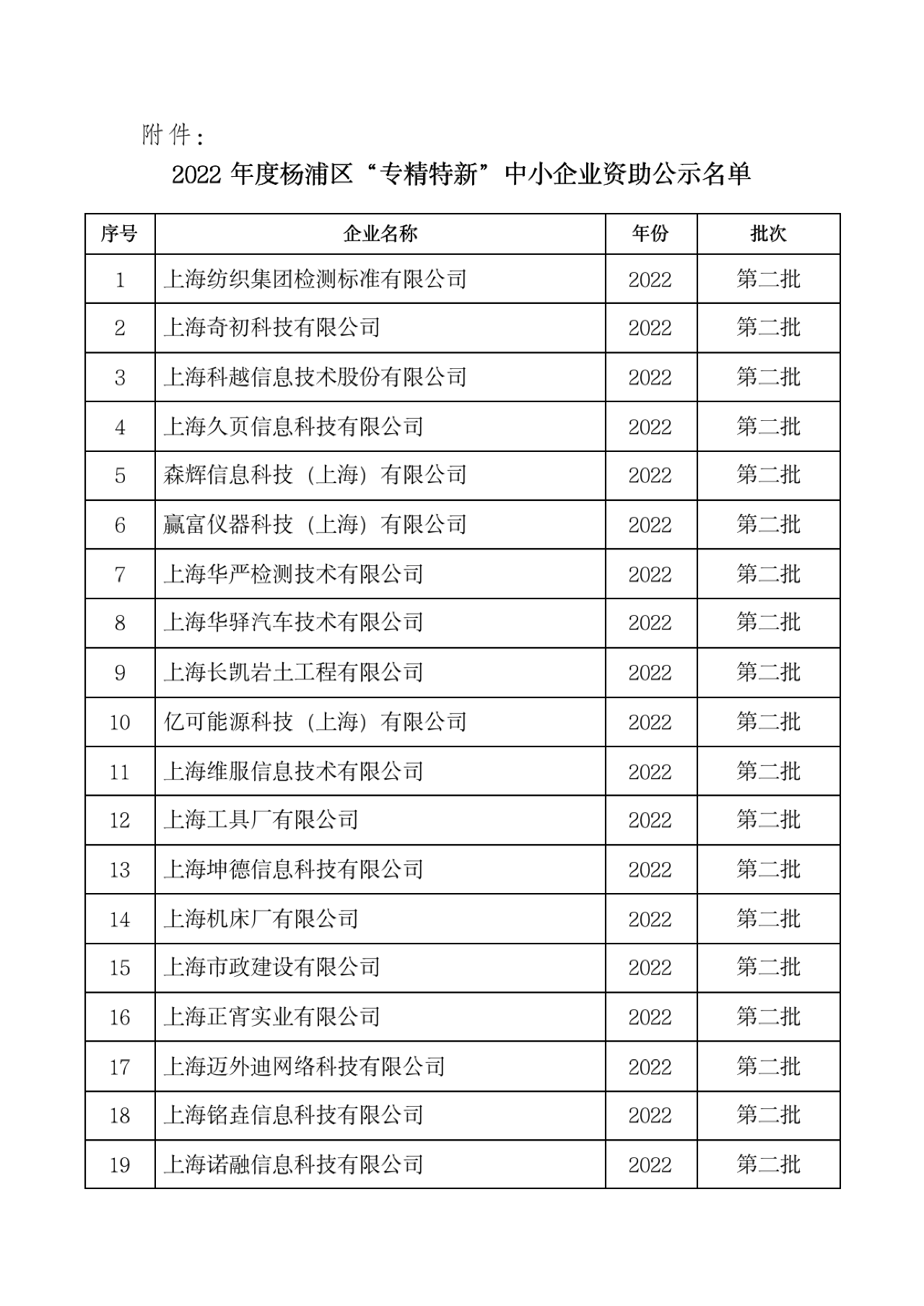 附件:2022年度杨浦区“专精特新”中小企业资助公示名单