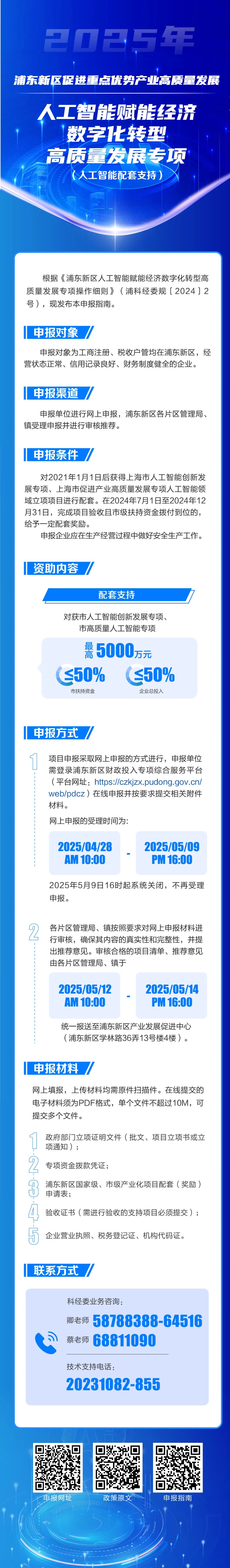 申报| 浦东新区促进重点优势产业高质量发展——人工智能赋能经济数字化转型高质量发展专项(人工智能配套支持)