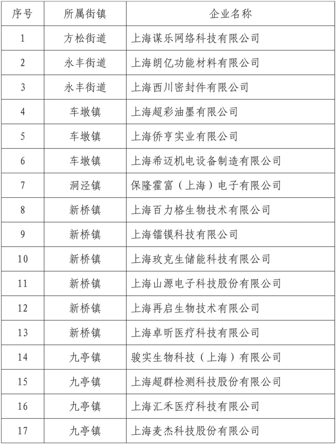 公示|2022年松江区企业技术中心认定名单